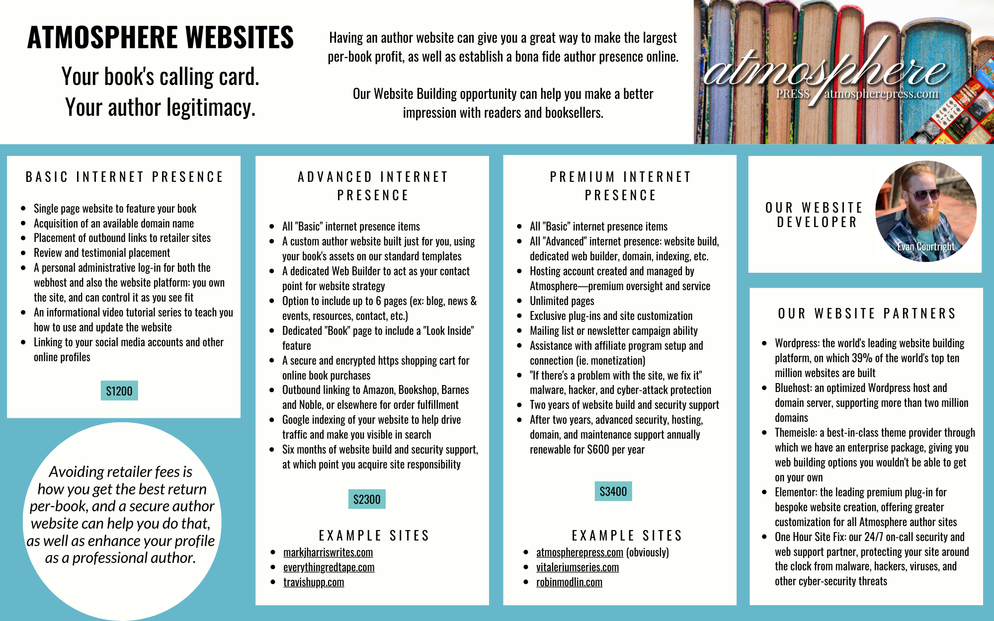 Let us build you a website that stands out amongst the rest! Our team will work with you to build a one-of-a-kind website that informs your audience, and offers you the highest returns on the sale of your book. Whether your looking for a full fledged ecommerce store for your book, or a more minimalist approach, we’ve got you covered. Take a look at our deals below.